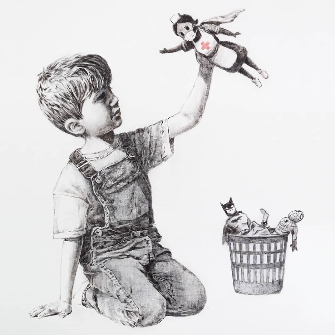«بنکسی» هنرمند گرافیتیکار و همواره معترض بریتانیایی اثر هنری جدید خود را در ستایش پرستاران و کادر درمانی طراحی کرد.