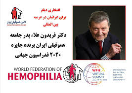 رئیس افتخاری مرکز درمان جامع هموفیلی ایران، برنده جایزه ۲۰۲۰ فدراسیون جهانی هموفیلی شد.