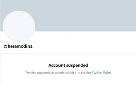 صفحه حسامالدین آشنا در شبکه اجتماعی توئیتر به حالت تعلیق درآمد.