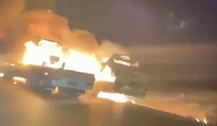 این کاروان حامل مواد و تجهیزات تدارکاتی بود و چندین خودرو از آنها به علت انفجار بمبهای کنار جادهای در آتش سوخت.