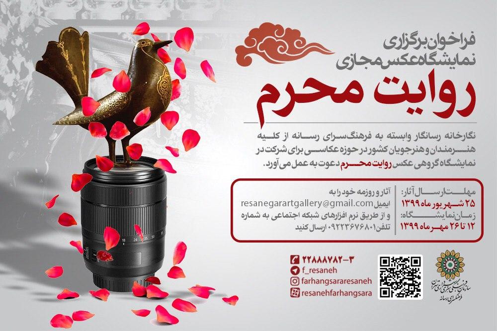 به گزارش روابط عمومی فرهنگسرای رسانه، با توجه به شیوع بیماری کرونا و تعطیلی نگارخانههای کشور، برگزاری نمایشگاههای مجازی میتواند جایگزین خوبی برای ادامه روند برگزاری برنامههای فرهنگی، هنری در میان هنرمندان باشد؛ بنابراین فرهنگسرای رسانه نمایشگاه عکس «روایت محرم» را برگزار میکند.