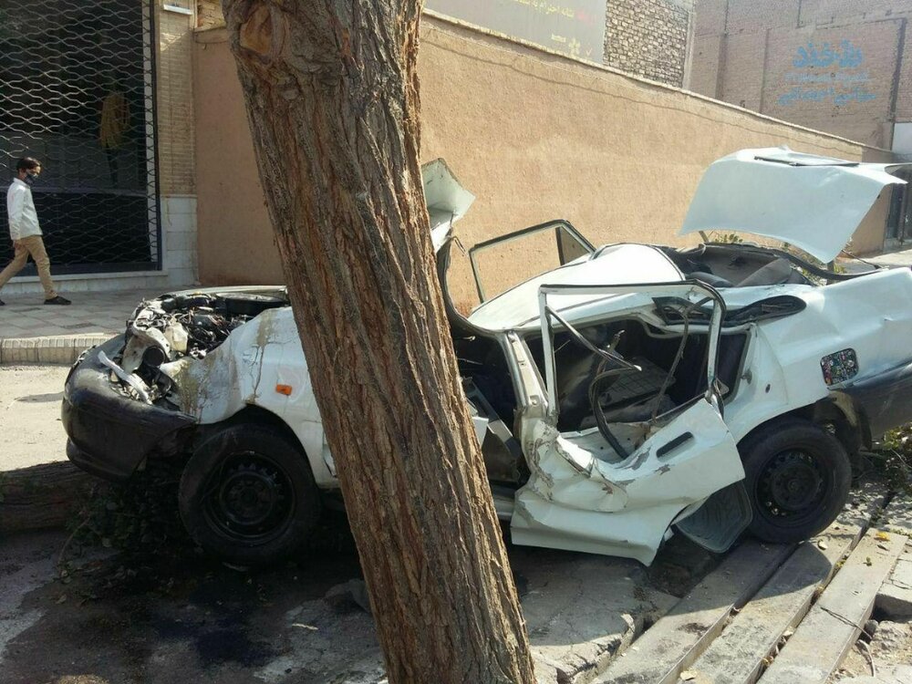تصادف شدید پراید با درخت و مچاله شدنش را ببینید.