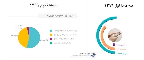 طبق آخرین آمار ارائه شدۀ سازمان تنظیم مقررات و ارتباطات رادیویی، در پایان سه ماهۀ دوم سال 1399، سهم بازار همراه اول و ایرانسل، هر کدام 0.06% افزایش و سهم بازار رایتل 0.13% کاهش داشته است.