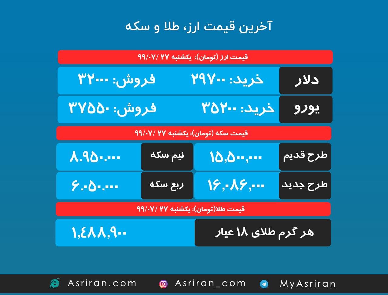 آخرین قیمت طلا، ارز و سکه (اینفوگرافیک)