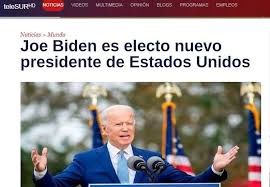 به گزارش ایرنا، با گذشت حدود یک ساعت از اعلام نام جو بایدن سناتور کهنه کار دموکرات به عنوان ریاست جمهوری منتخب آمریکا و پیشی گرفتن آرای الکترال این نامزد از دونالد ترامپ جمهوریخواه، خبر پیروزی بایدن به تیتر بسیاری از رسانه های آمریکای لاتین تبدیل شد.