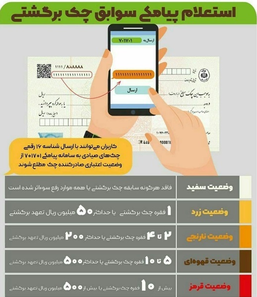 پس از تغییرات جدید قانون صدور چک، امکان استعلام پیامکی وضعیت سابقه صاحب حساب فراهم شد.