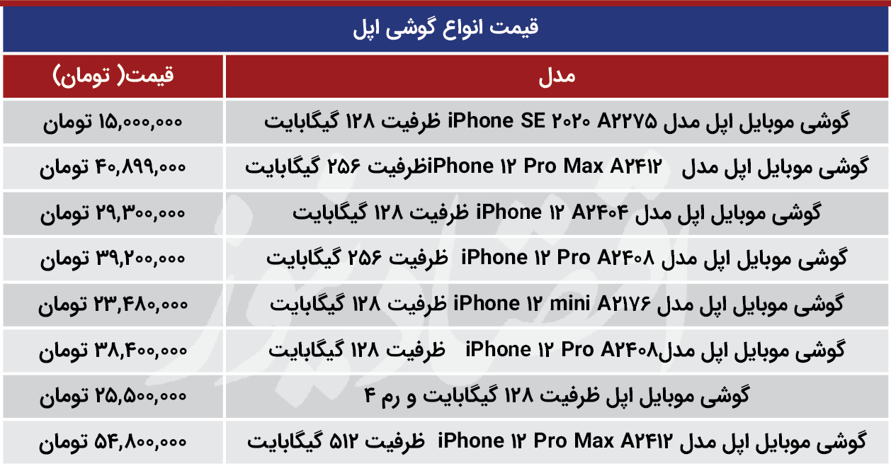 همچنین گوشی موبایل اپل مدل iPhone 12 mini A2176 با ظرفیت 128 گیگابایت در مقایسه با ده روز گذشته با کاهش قیمتی حدود یک میلیون تومان، به 23 میلیون و 480 هزار تومان رسید.