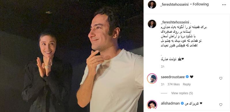 پست اینستاگرامی فرشته حسینی برای تولد نوید محمدزاده (+عکس)