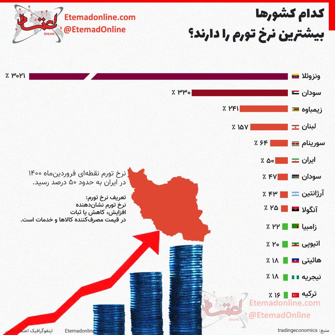 کدام کشورها بیشترین نرخ تورم را دارند؟