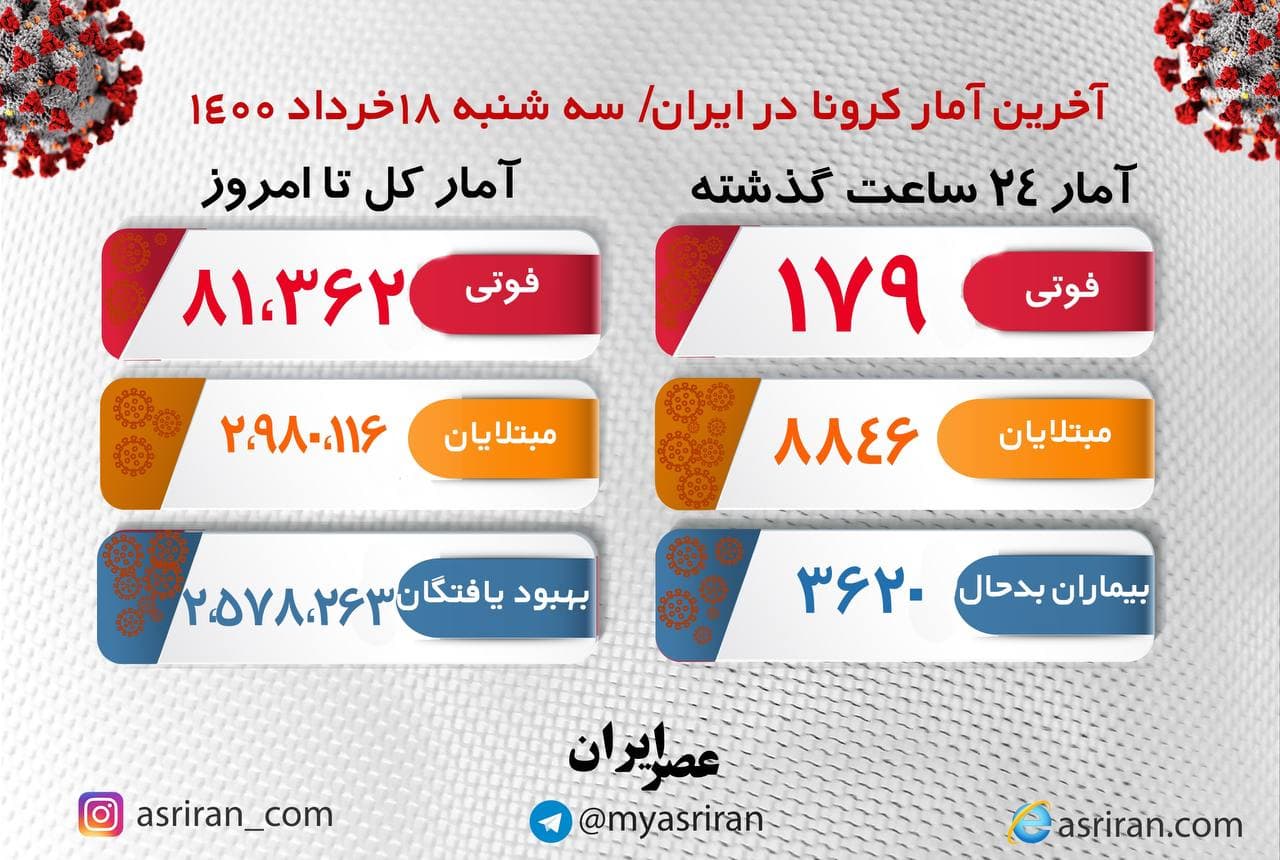 آخرین آمار کرونا در کشور سه‌شنبه ۱۸ خرداد (اینفوگرافیک)