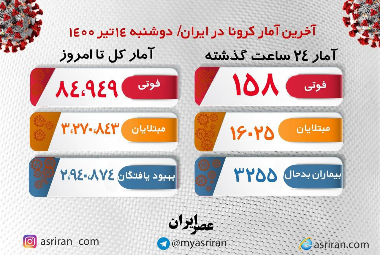 آخرین آمار کرونا در ایران دوشنبه ۱۴ تیر (اینفوگرافیک)