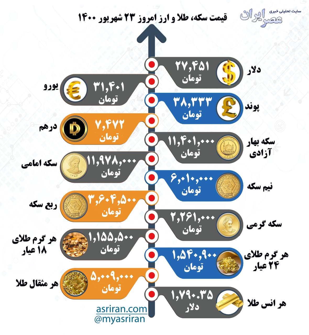 قیمت سکه، طلا و ارز، سهشنبه ۲۳ شهریور (اینفوگرافیک)