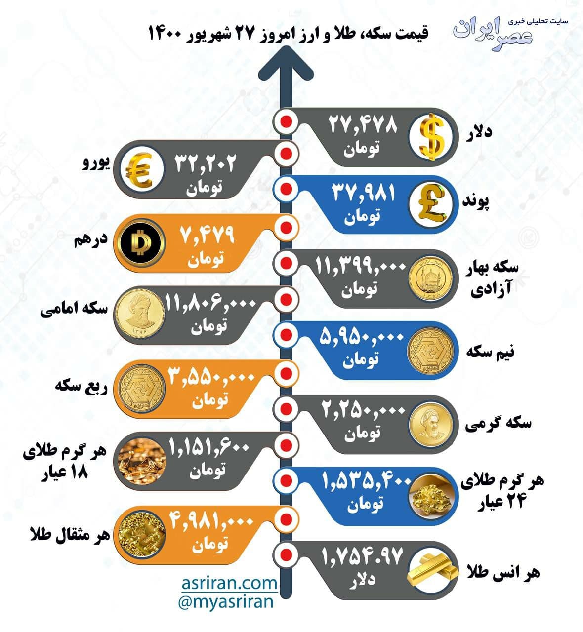 قیمت سکه، طلا و ارز، شنبه ۲۷ شهریور ۱۴۰۰ (اینفوگرافیک)