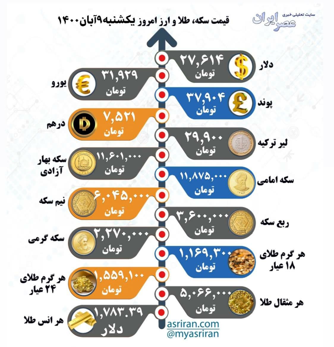 قیمت سکه، طلا و ارز امروز ۹ آبان ۱۴۰۰ (اینفوگرافیک)