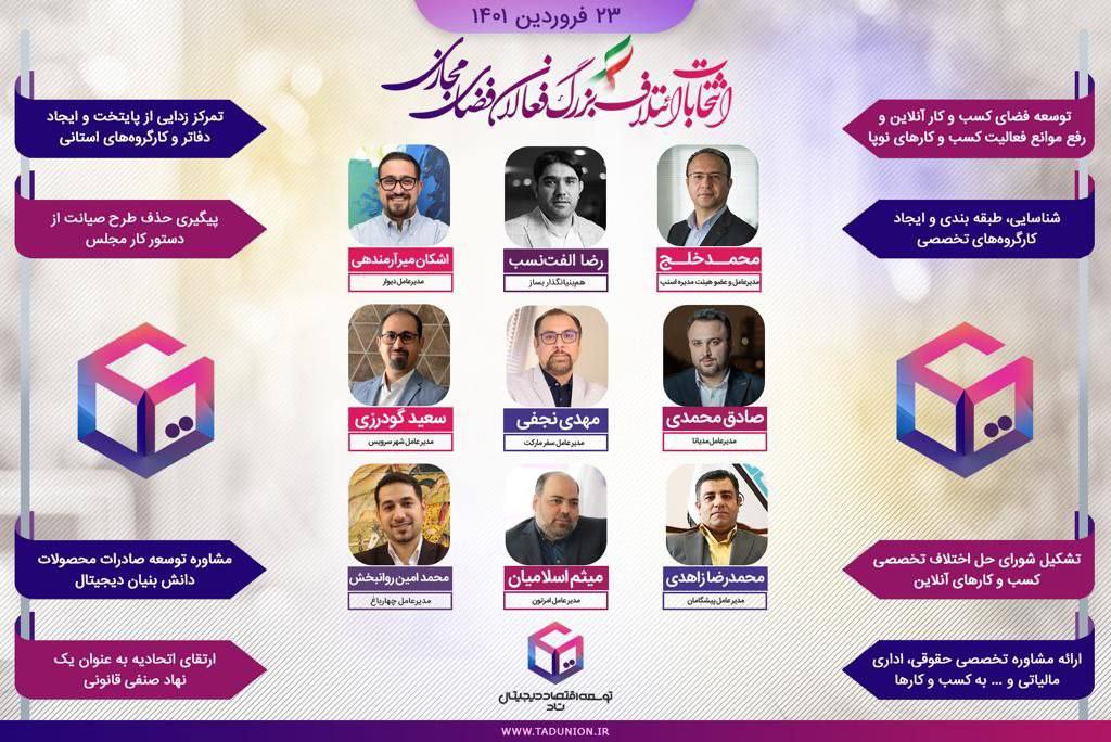 در آستانه دومین دوره انتخابات هیات مدیره اتحادیه کسب و کارهای مجازی ائتلاف تاد با حضور جمعی از مدیران کسب و کارهای موفق مجازی تشکیل شد. اصلی ترین اهداف ائتلاف تاد بهبود و تسهیل فضای کسب و کار دیجیتال، تعامل با نهادهای حاکمیتی ، پیگیری حذف طرح صیانت و ارایه طرح جایگزین توسط سایر ذینعفان، توانمندی سازی کسب و کارهای کوچک و متوسط و پیگیری مسایل صنفی عنوان شده است.