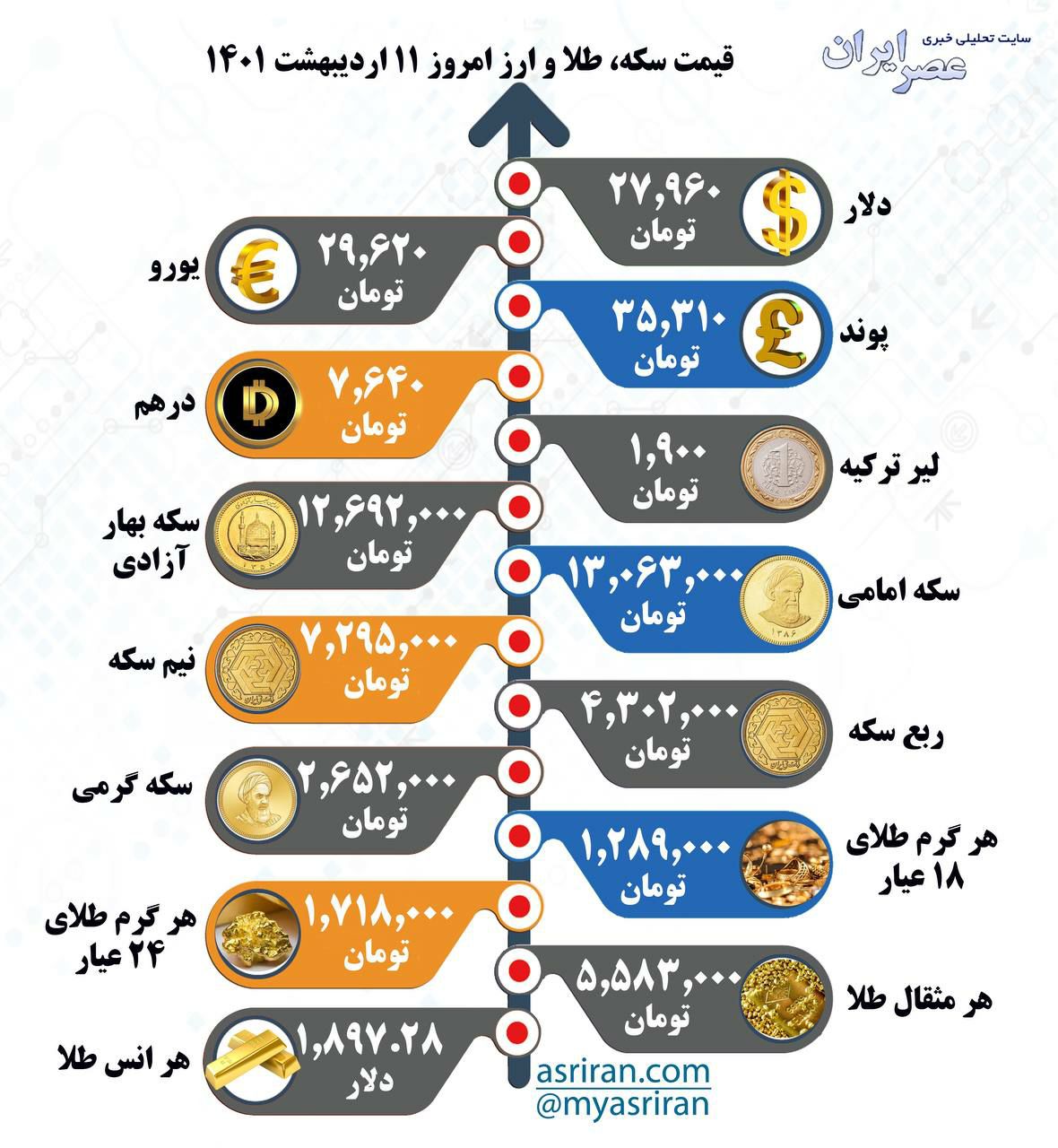 قیمت سکه، طلا و ارز امروز ۱۱ اردیبهشت ماه ۱۴۰۱ (اینفوگرافیک)