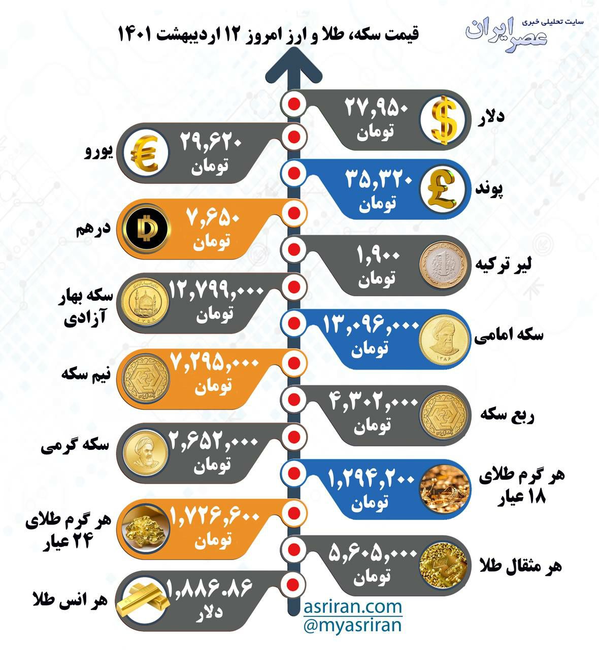 قیمت سکه، طلا و ارز امروز ۱۲ اردیبهشت ماه ۱۴۰۱
