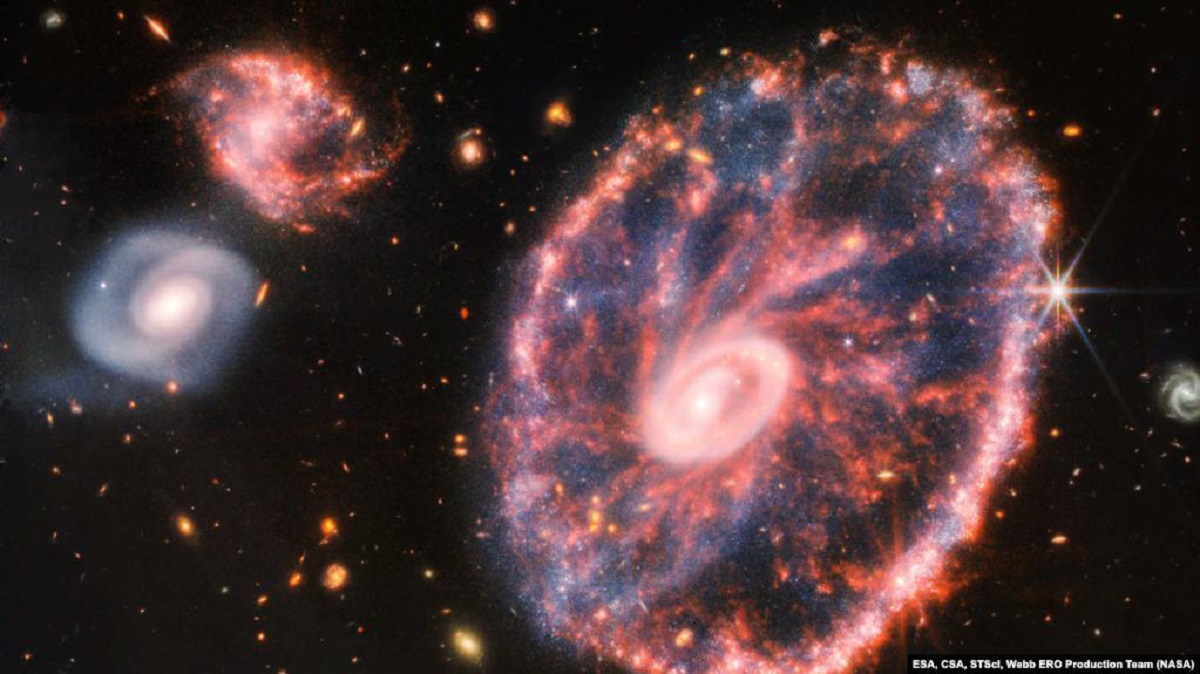 ناسا و آژانس فضایی اروپا اعلام‌کردند توانایی تلسکوپ جیمز وب در تشخیص نور مادون قرمز به آنها اجازه داده تا از میان «مقادیر عظیمی از غبار داغ» که نمای کهکشان «چرخ گاری» را پنهان می‌کند این کهکشان را مشاهده‌ کرده و از آن تصویر بگیرد.