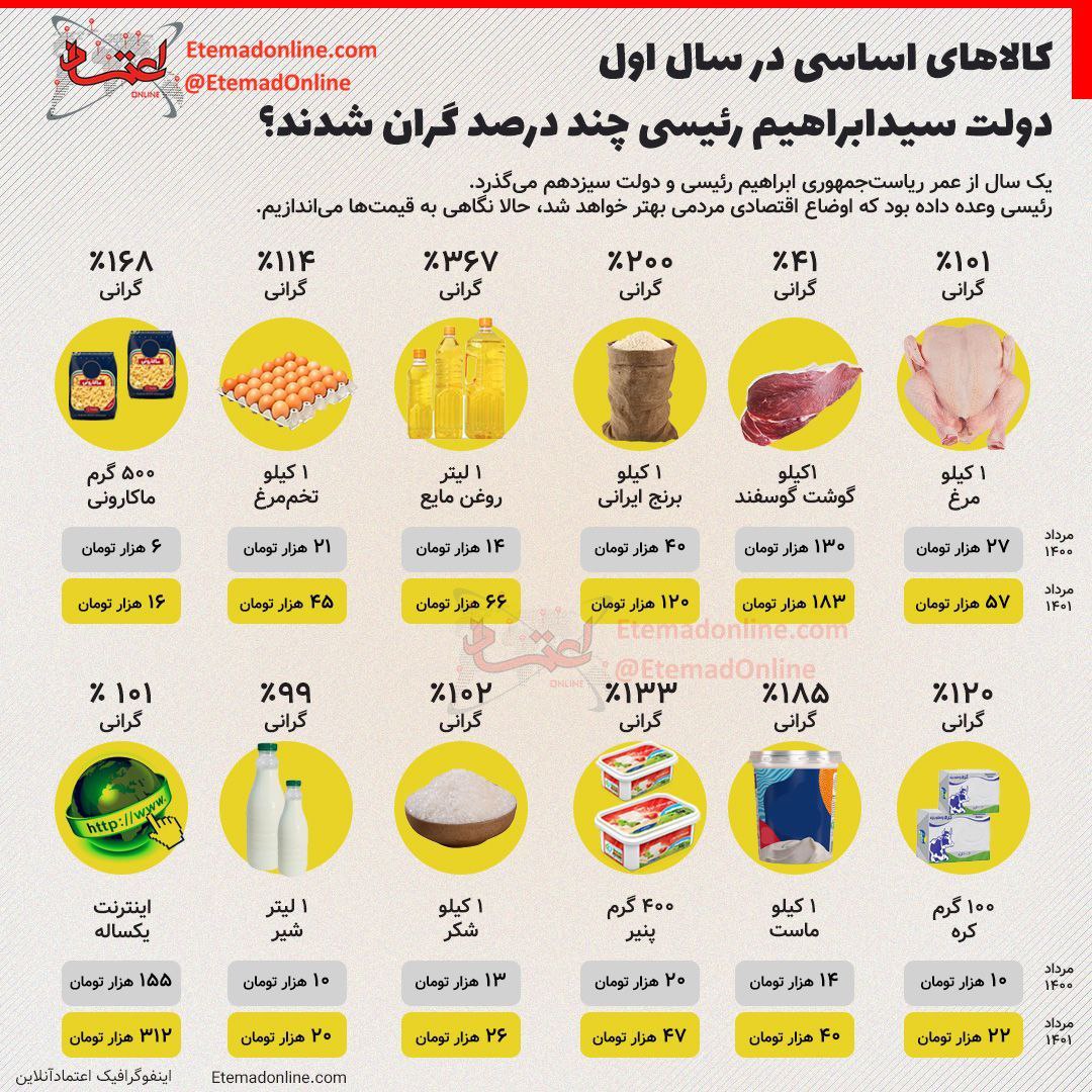 کالاهای اساسی در سال اول دولت رئیسی چند درصد گران شدند؟