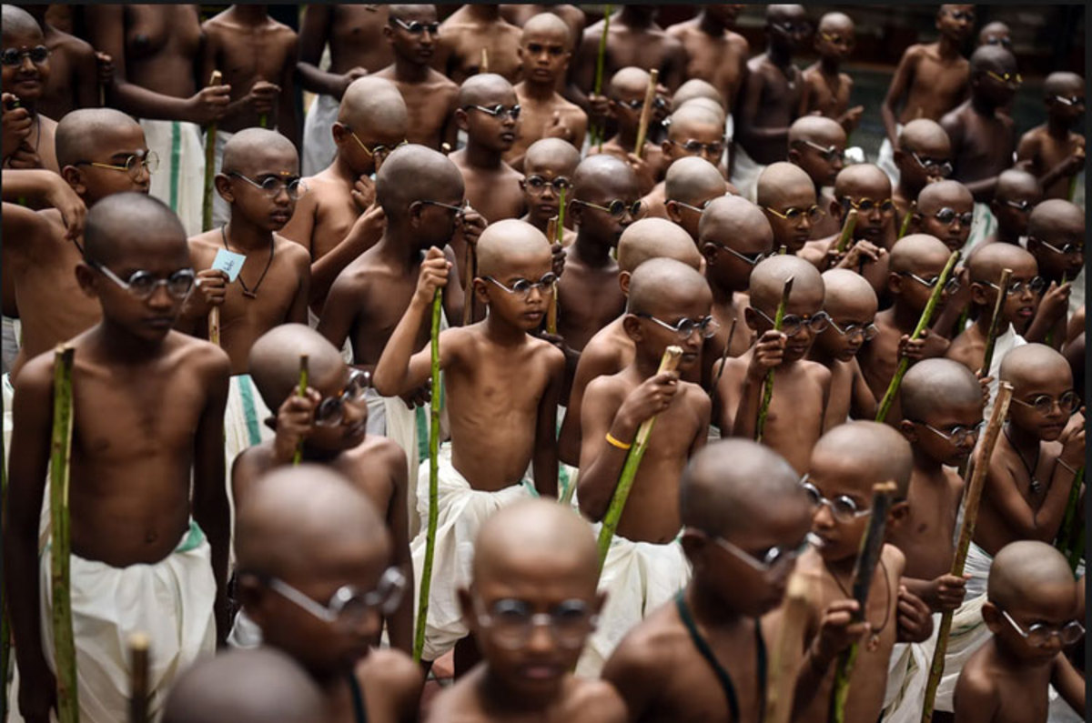 کودکان در لباس مهاتما گاندی در صدو پنجاه و سومین سالگرد تولد رهبر استقلال هندوستان / شهر "چنای" هند/ EPA