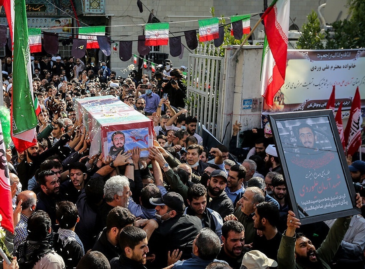 پیکر طلبه شهید مدافع امنیت آرمان علیوردی، ظهر یک شنبه (۸ آبان ۱۴۰۱) با حضور جمعی از مردم از مقابل مسجد جامع امام علی (ع) منطقه شهران تهران تشییع شد./منبع: ایرنا
