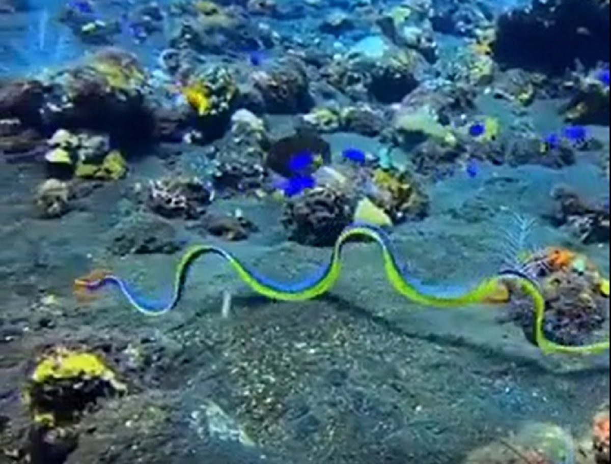 ببینید | زیبایی شگفت انگیز مار آبی پهن در اقیانوس