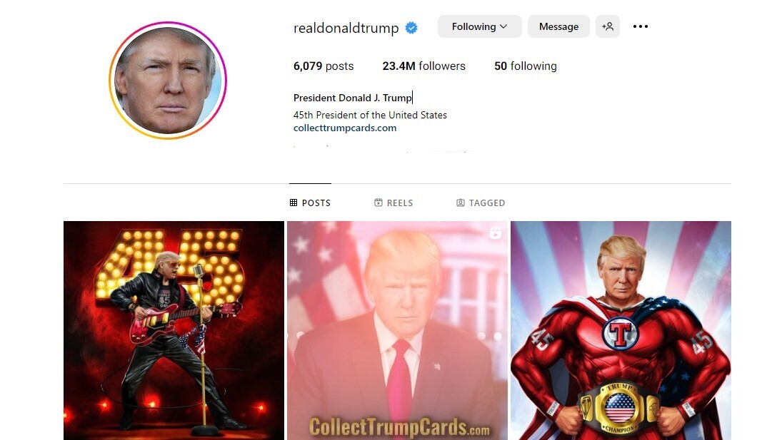 دونالد ترامپ، رئیسجمهوری پیشین آمریکا پس از وقفهای ۲۷ ماهه به دنبال تعلیق حساب کاربریاش در اینستاگرام پس از ماجرای یورش به کنگره در ششم ژانویه ۲۰۲۱، فعالیت در این رسانه اجتماعی را با انتشار پیامهایی درباره کارتهای دیجیتال ترامپ از سر گرفت./ منبع: اعتمادآنلاین