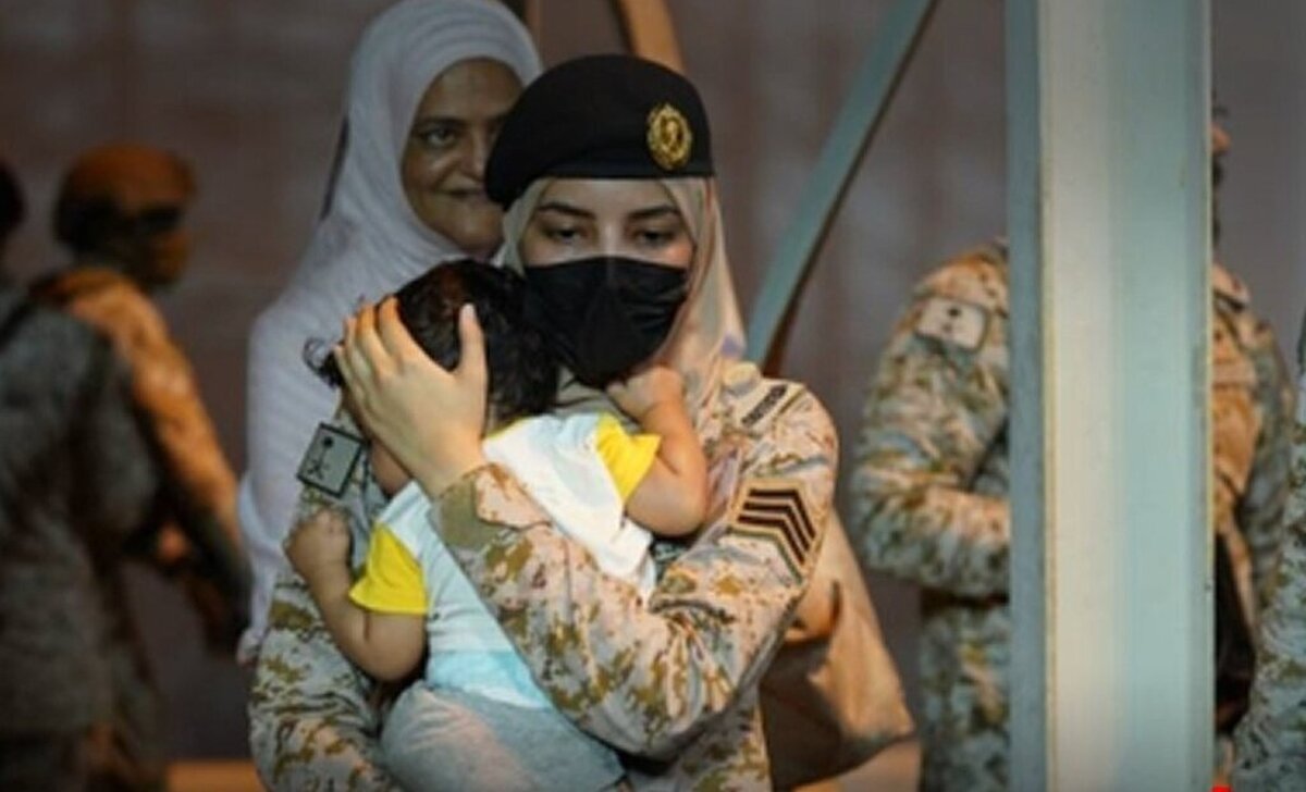 کودک در آغوش زن سرباز سعودی ؛ تاثیرگذارترین تصویر در بحبوحه جنگ سودان (عکس)