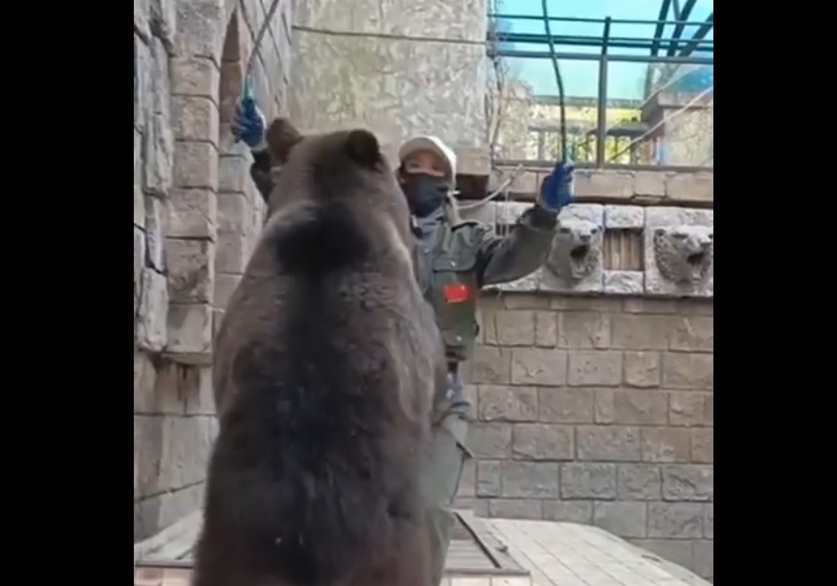 انتشار فیلمی از طناب زدن مشترک یک خرس با انسان توجه کاربران فضای مجازی را به خود جلب کرده است.