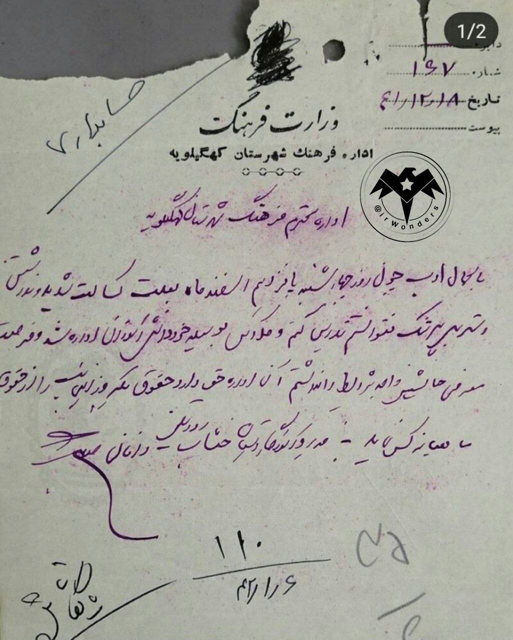 نامه تأمل برانگیز یک معلم به اداره در سال 1341 (تصویر)