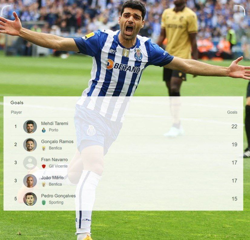 مهدی طارمی، مهاجم ایرانی پورتو در پایان فصل ۲۳-۲۰۲۲ لیگ پرتغال با به ثمر رساندن ۲۲ گل موفق شد مقتدرانه عنوان آقای گل این رقابت‌ها را به نام خود کند.