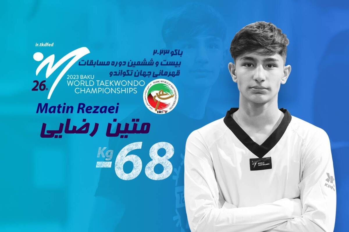 در روز اول رقابت ها «متین رضایی» در وزن ۶۸- کیلوگرم و «تینا مدانلو» در وزن ۵۷- کیلوگرم نمایندگان ایران بودند که در گروه آقایان در نهایت متین رضایی برابر «بردلی سیندن» از بریتانیا در مرحله نیمه نهایی قرار گرفت. راند اول ۱۵ بر ۱۳ به سود بردلی به اتمام رسید و در راند دوم نیز نماینده بریتانیا موفق شد با نتیجه ۲۱ بر ۵ نیز رضایی را شکست دهد. رضایی با واگذاری نتیجه برابر قهرمان جهان مکزیک و نایب قهرمان المپیک توکیو توانست مدال برنز رقابت های جهانی باکو را تصاحب کرد.