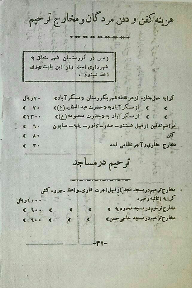 هرینه کفن و دفن و ترحیم در سال ۱۳۲۸